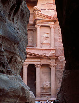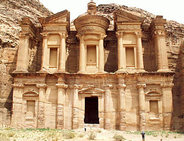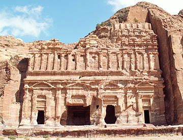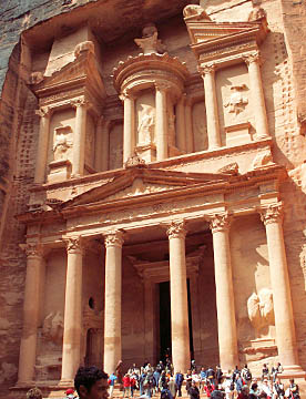ファラオの宝物殿とも言われるエル・ハズネは幅が28m高さが39mの堂々たる神殿である。