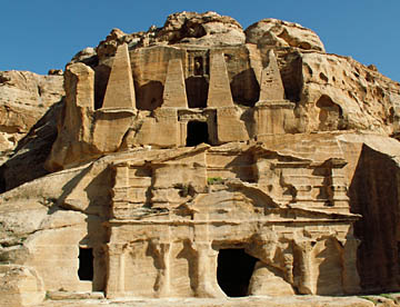 宮殿の墓、コリンシアンの墓、シルクの墓、アーン(つぼ)の墓と並んだ墓は、圧倒されるほど大きく、立派な造りで、墓というよりは岩窟宮殿といった感じ。