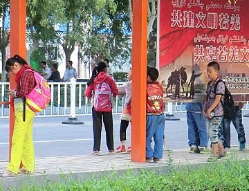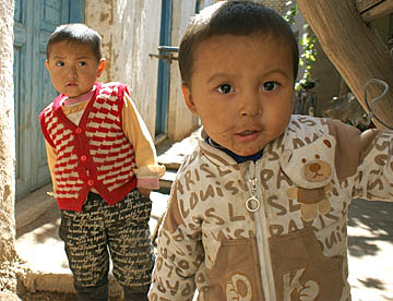 ウイグルの子供たちは、ちょっとはにかみやさんですが人なつっこいです。