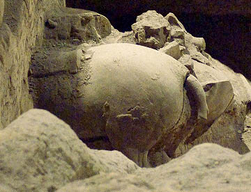 今目にする像は土色だが、発掘された当時には一部に着色が残り陪葬された当時には全体が着色されていたのかも知れない。それにしてもこれほどの陶製の像が陪葬されたという事実にただ驚くのみ。