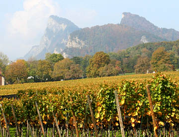食後はハイジの家を見たり、ハイジが遊んでいたであろう牧草地とブドウ畑の道をウオーキング。