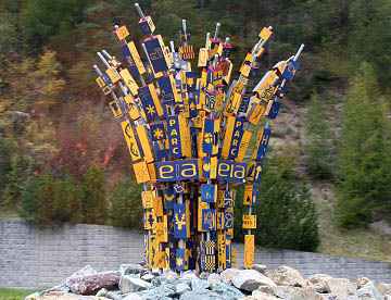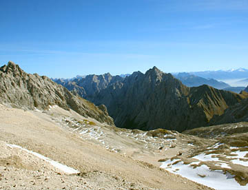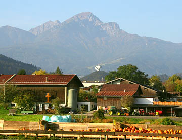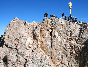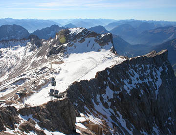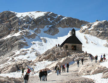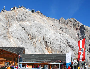 山頂のすぐ近くに大きなレストハウス。このレストハウスはオーストリア側のレストハウスと繋がっていて広い屋上はぐるりと周囲を見渡す展望台になっていて、二つの大きな屋根の合わさった狭いところが国境になっている。