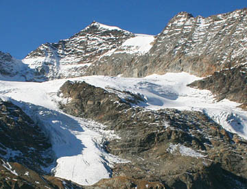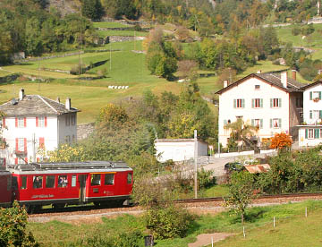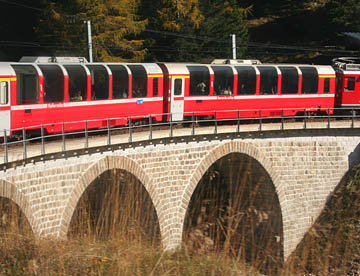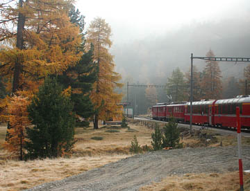 特急とはいっても標高2323mのベルニナ峠目指してトコトコと走り、車窓からは雄大なベルニナアルプスの景色、真近に迫る氷河などが途切れることなく続き、カメラを手に席に座る間もないほど。
