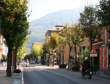 落ち着いた感じのスイスのサンモリッツから陽気なイタリアの街に来たのが実感できる、駅前の道を歩いてレストランでパスタの昼食。