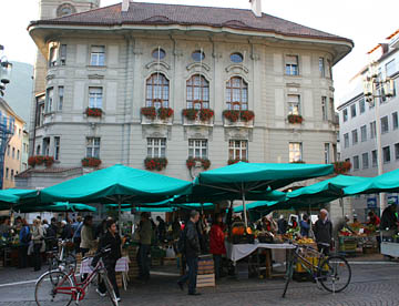 バスで上った道を歩いてマインフェルトの中心・ポスト広場へ。