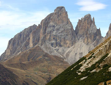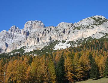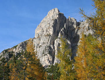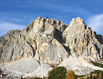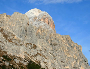 目の前に聳えるドロマイトの岩肌をむき出しにした山に登ってみたい衝動にかられる。