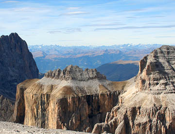 マルモラーダ連峰をはじめとするドロミテの山々の眺めに飽きることがない。