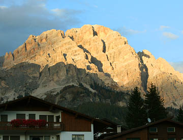 ボルツァーノへ着いたときにちょうどドロミテの山が夕陽に紅く染まっていた。