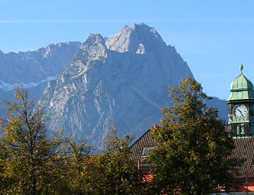 ガルミッシュ・パルテンキルヘンの駅からもドイツの最高峰・ツークシュピッツェが眺められる。