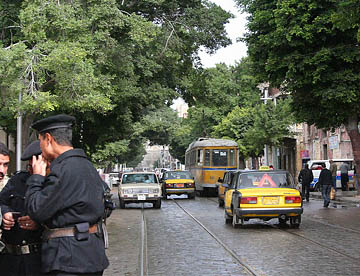 路面電車、バス、タクシー等で大混雑の道を国立博物館へ。