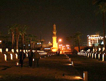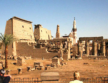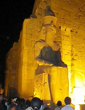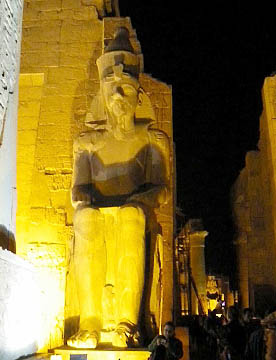 オープンテラスのNUBIAN CALTURE CENTERでローカル色たっぷりの昼食を摂り、再び東岸の生者の街に戻って、昨夜ライトアップされていたルクソール神殿を横目に見ながらカルナック神殿へと向かう。