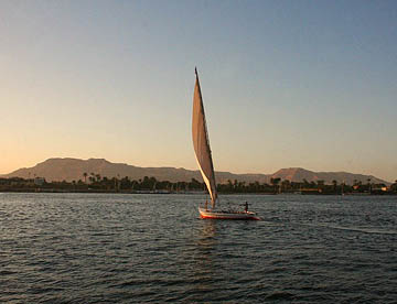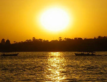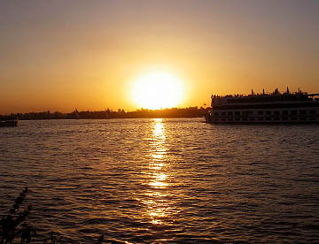 ナイルに沈む夕日を見てから、涼しくなった川べりのレストランでゆったりと夕食。