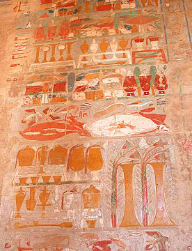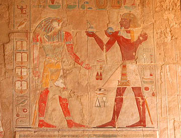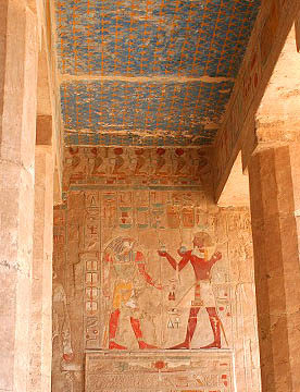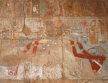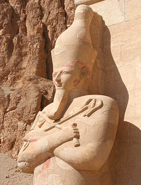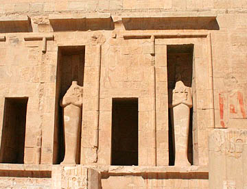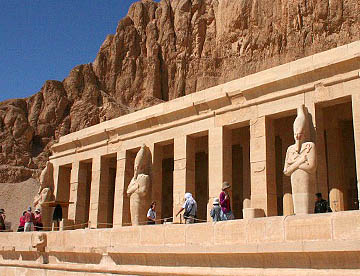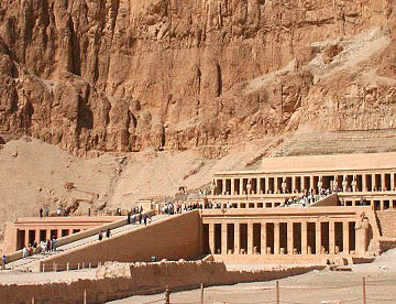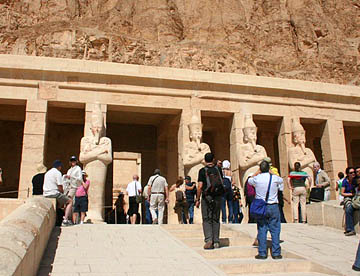 ハトシェプスト葬祭殿は岩山に彫られた巨大な葬祭殿だが、壁画や彫刻は元のままだが、参道や外観はきれいに復元されていてちょっとがっかりさせられた。紀元前1500年にこれほど立派な建造物を造る技術を持っていたとは、驚嘆の一言。