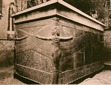 その後にラムセスW、ラムセス\、トトメスVと見学したが、ツタンカーメン王墓は今回見た王墓の中では参道の長さ、玄室の広さ、壁面の彫刻等すべての面で一番規模が小さく壁画も未完成。若くして急逝したためなのか?