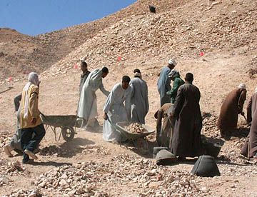 ツタンカーメン王のミイラは今もこの玄室に眠るが、黄金のマスクに代表される3重の棺や数々の副葬品はすべてカイロの博物館に移されてちょっと寂しいツタンカーメン王墓だった。その周囲では今でも発掘作業が続けられていて、まだまだ新しい王墓が見つかるかもしれない。