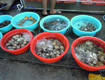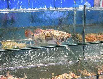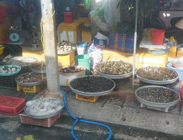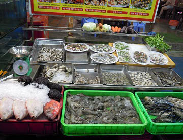 周囲が海に囲まれているので島名物のウニ、白身魚、イカ、貝等々シーフードのお店がたくさん。自分で魚を選び調理法を指定して値段を交渉するスタイルだ。