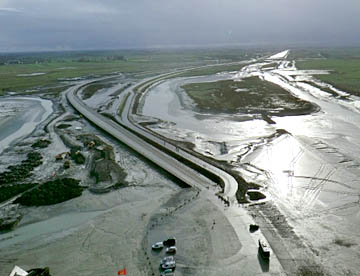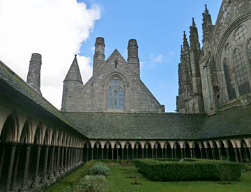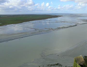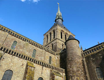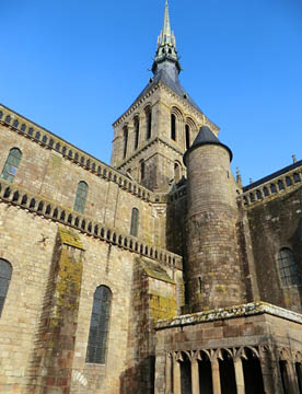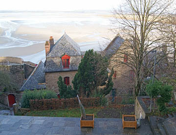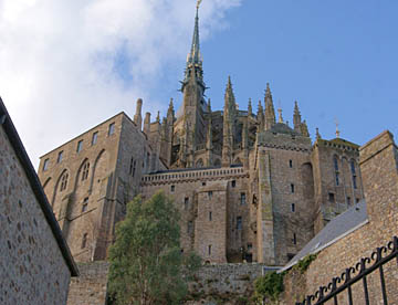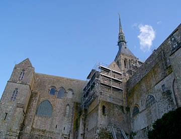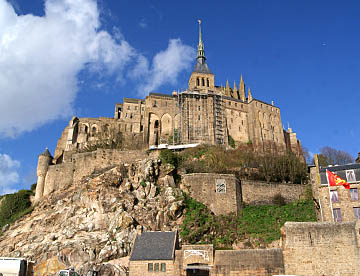 その後は修道院として修復されているが、潮の流れが速くかつ潮の干満の差が大きく、島への往来を簡易にするために道路で結ばれたが、結果として島の周囲に大量の砂が堆積しあたかも砂洲のようになってしまい、今は脚付きの橋が建造され周囲の海では浚渫が進められている。だが海に浮かぶモンサンミッシェルのイメージを取り戻すのにはまだ相当の年月が掛かりそう。