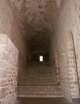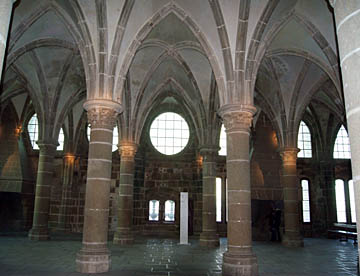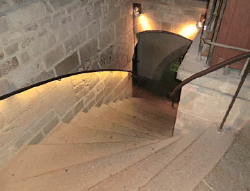 ホテルのチェックインを済ませ細い坂道の参道を上っていくと小さなサンピエール教会。さらに登っていくとチケット売り場に辿り着く。チケット売り場からはさらに急な階段を上って最上部に位置する修道院に入る。ここからは下りながらの観光。