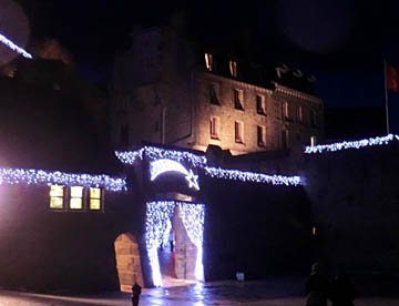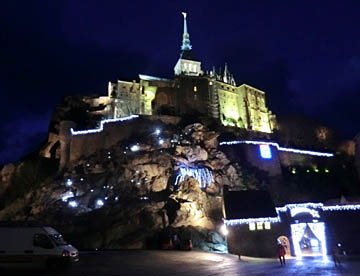 夜はサンピエール教会を見てからシャトルバスで陸地側に渡り、夜空に浮かび上がるライアップされたモンサンミッシェルを眺め再びシャトルバスで観光客の去った静かな島に戻ってきた。