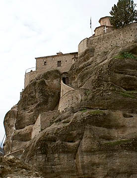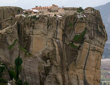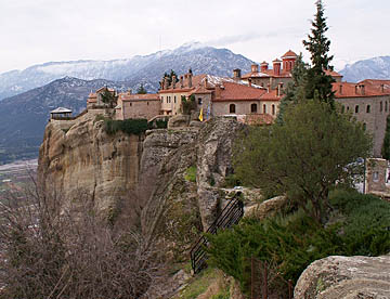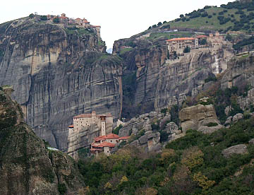 朝食後バスで奇岩群の上に建つ修道院に向かう。メテオラで最大のメガオメテオロン修道院が閉まっていたのでアギオスステファノス修道院とヴァルラーム修道院を見学することに。