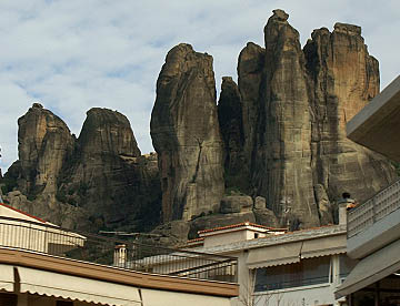 朝起きて窓を開けると目の前にメテオラの奇岩群が迫っていた。