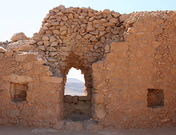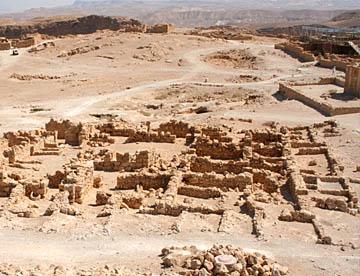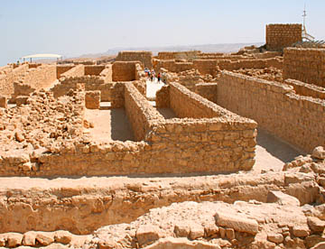 ローマ軍の侵攻によって最後は全員が玉砕したとされるマサダは大きな岩山全体が砦になっていて、残された建物の石組みからもその大きさがうかがえる。