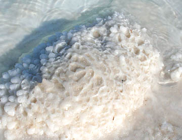 ヨルダンを旅行した時にも死海に入ったけれど、その時の海底は黒くどろどろとしていたけれど、ここの海底は真っ白でいかにも「塩」。そのために太陽の光を映して水の色も明るい水色に見えてすごく綺麗。