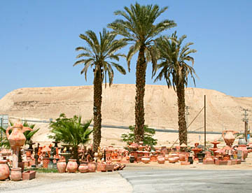 死海写本を制作した部屋の跡を見学して写本が発見された洞窟を遠望し、再びバスに戻り、所々にナツメヤシが栽培されている死海の西岸をさらに南下。
