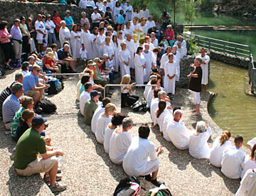 真っ白なガウンのような衣服を身に纏ったヨーロッパからのキリスト教徒の人達が洗礼を受けていた。
