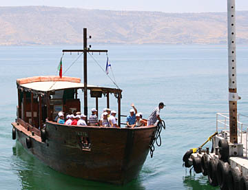 その後エンゲブより古代の船をかたどった遊覧船で対岸のカペナウムを目指す。