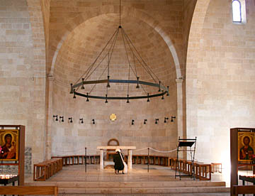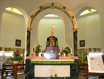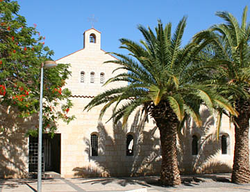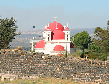 カペナウムとタブハの後方、ガリラヤ湖を望む高台にイエスが一般市民に教えを説いた場所に建てられた女子修道院が「山上の垂訓教会」で中は八角形で意外に狭く装飾はシンプル。