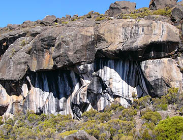 昨日までの道よりも勾配のきつい登山道を40分ほど登ったところに、ゼブラロックと名付けられた縞々模様の大きな岩がある(標高3980m)。