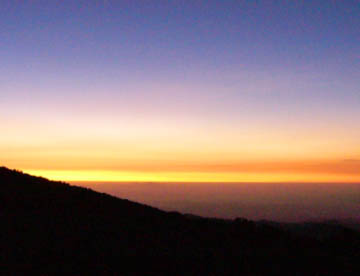 その月は、ギルマンズポイントに近づくにつれて大きさを増して、色も徐々にオレンジ色にと変わってやがて、火口壁の彼方へと沈んでいった。