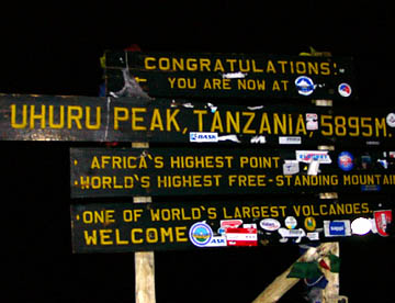 それがだんだんと近づいたら、そこが「UHURU PEAK(標高5895m)」だった。
