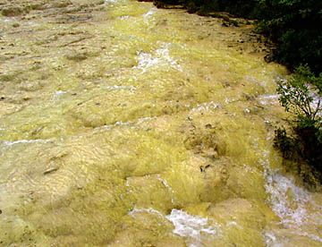 あの白い石灰棚が黄色く色付いた状態を思えばいい。
