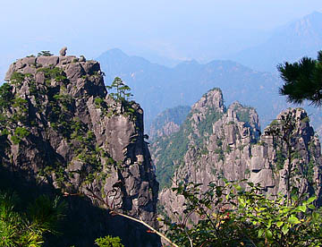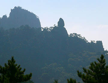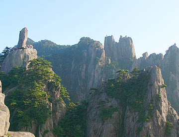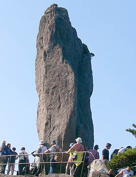 始信峰、観音峰等を見て今日の宿、北海賓館で昼食をとり1860メートルの光明頂に登り、飛来石に触れてさらに排雲亭へ。