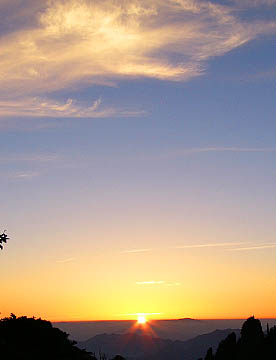 寒いけれど東の空が茜に染まり、やがて徐々に色が濃くなってくる大自然の作り出すグラデーションにただ見とれる。