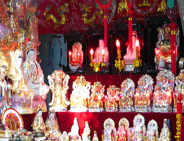商店が軒を並べる老街は大半がお土産を売る店で中秋を祝う飾り付けの真っ最中でした。