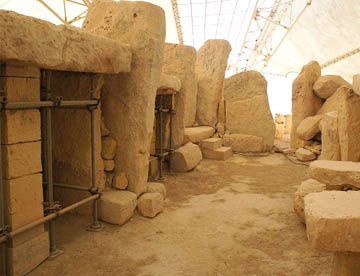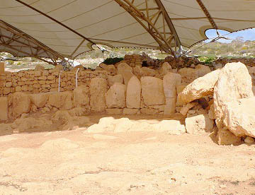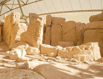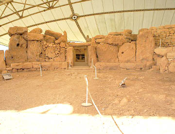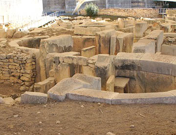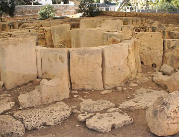 紀元前3000〜2500年頃の遺跡で、巨石を組み合わせた半円形の神殿が4つ集まっている遺跡で、数あるマルタの巨石神殿のなかでも土中に埋もれていたために保存状態のいい遺跡です。この遺跡も、先史時代の巨石神殿群の1つとして世界遺産に登録されています。
