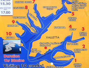 ヴァレッタの東海岸沿いの街スリーマの観光桟橋からのハーバークルーズ。