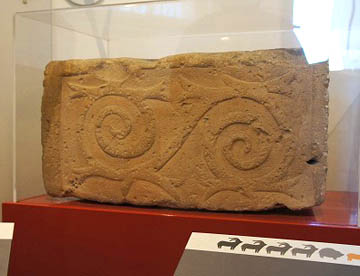 タルシーン神殿の装飾で印象的なのが、石に刻まれたうずまき模様のレリーフ。