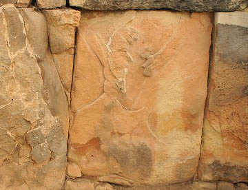 その近くにある石板には、よく見ると2頭の雄牛が向かい合うレリーフも。
