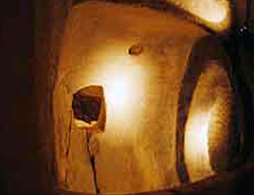 広間からつづく部屋の壁には野牛の壁画があったと言われているが、現在は薄くなってしまい薄暗い中ではほとんど見えない。その壁画の反対側からはさらに地下へ行く入り口がある。3階建ての地下神殿ハイポジウムの最下部は、地上から10.6メートルの深さになる。