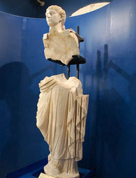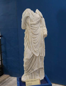 ここに展示されていた像は古代神殿から出土したようなふくよかな女性像とは全く異なり均整のとれた衣服を纏った男性像です。