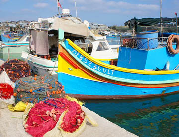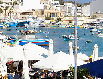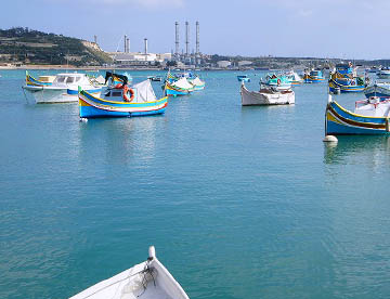 マルサシュロックとはアフリカから吹く熱風を避ける港という意味で、多くの漁船が錨を下せる波の静かな湾です。