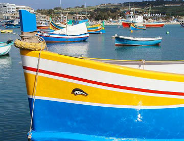 マルタと言えば必ず登場する黄色や青、赤でペイントされた、おもちゃのようなカラフルで独特の形の「ルッツ」と呼ばれる伝統的な小型船が湾内に浮かんでいます。