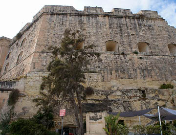 ヴァッレッタのアッパーバラッカガーデンから真正面に大きく見えるの聖アンジェロ要塞ですが、この砦内の牢獄に画家のカラバッジョが投獄されるのですが、脱獄しシチリアに逃れたと言われています。