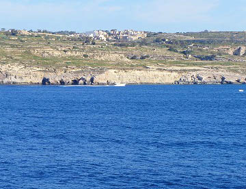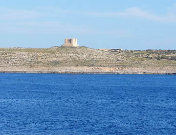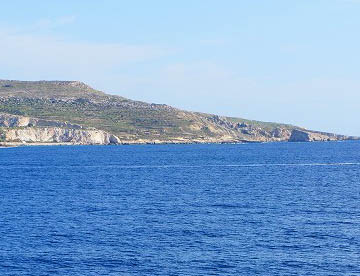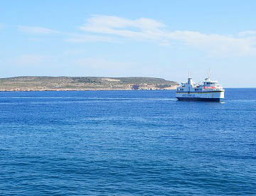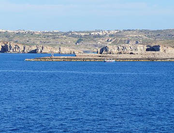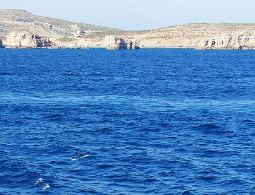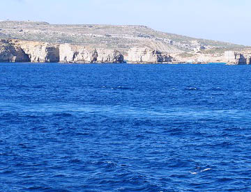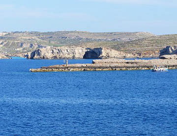 航海中に右手に見える島がマルタ共和国で3番目の大きさのコミノ島です。