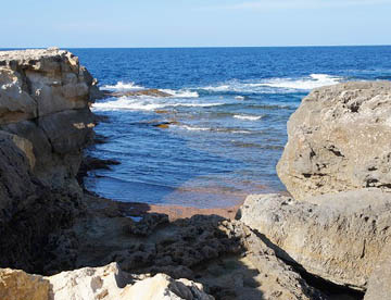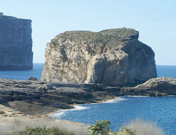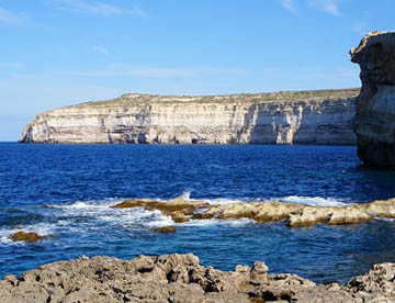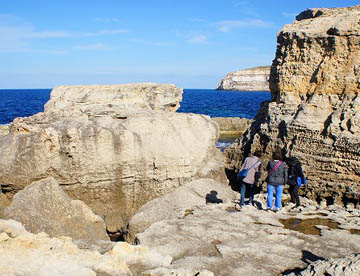 今でも周辺の海の深い青と相まっ て独特の雰囲気があります。アズールウインドウ跡の手前にある海岸はブルーホールと呼ばれダイビングポイントにもなっていて、ゴゾ島のハイライトのひとつでもあります。