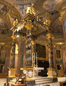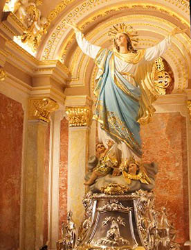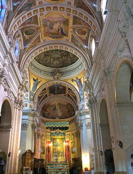 大聖堂も1693年の大地震で崩落してしまい、マルタの石灰岩を用いて1697年から14年の歳月をかけて再建されたバロック様式の大聖堂です。